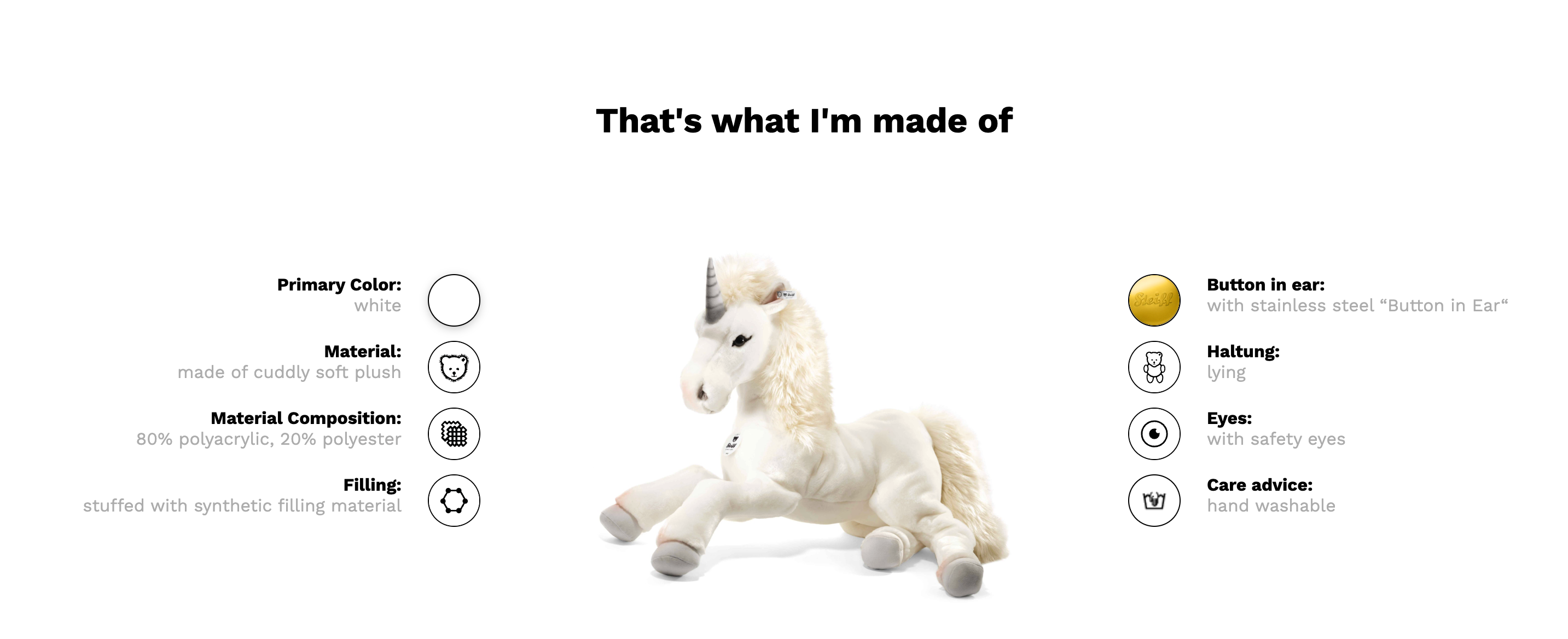 Standing at an impressive 70cm, this enchanting dangling unicorn features a luxuriously soft faux fur coat in pristine white that's irresistibly cuddly. Starly's generous size makes her perfect for snuggling, displaying, or taking on magical adventures.