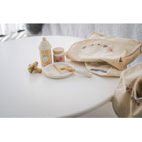 A stunning neutral nappy bag filled with feeding and changing accessories to keep your baby doll happy. Designed with delicate pastel colours and sustainable rubberwood this lovely set designed features;