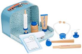 • Quality materials – wooden medical instruments, and the medical case is made from sturdy cardboard with metal handle and closure