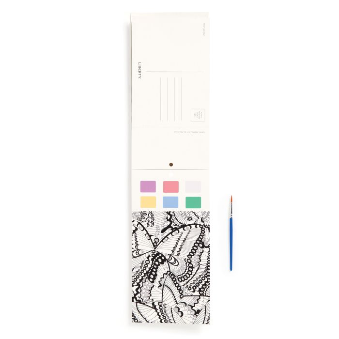 The Liberty Paint In Card Set includes a set of 6 cards featuring the iconic floral designs of Liberty London that can be painted using the 6 colours embedded into the top of the card.
