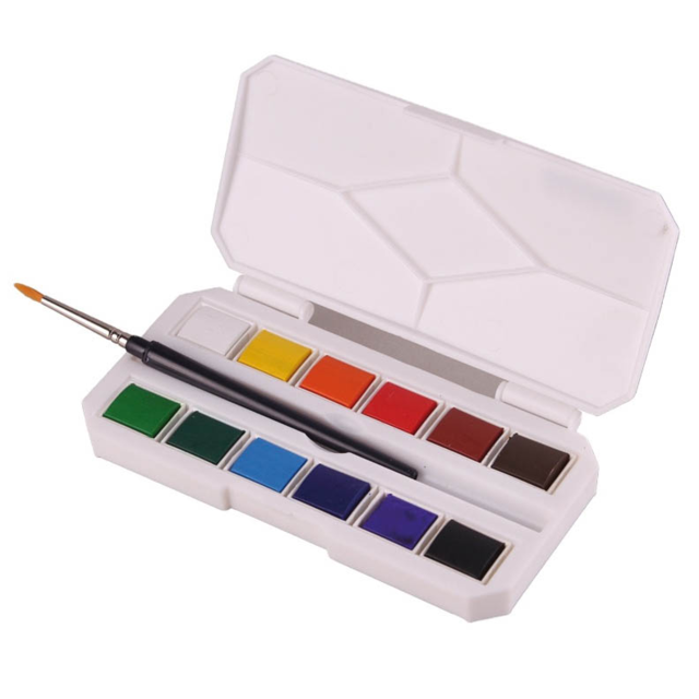 Unleash your creativity with the Sinoart Travel Watercolour Pan Set, featuring 12 vibrant colors, a compact portable vcase (with inbuilt mixing trays in the lid), and a travel sized synthetic brush.