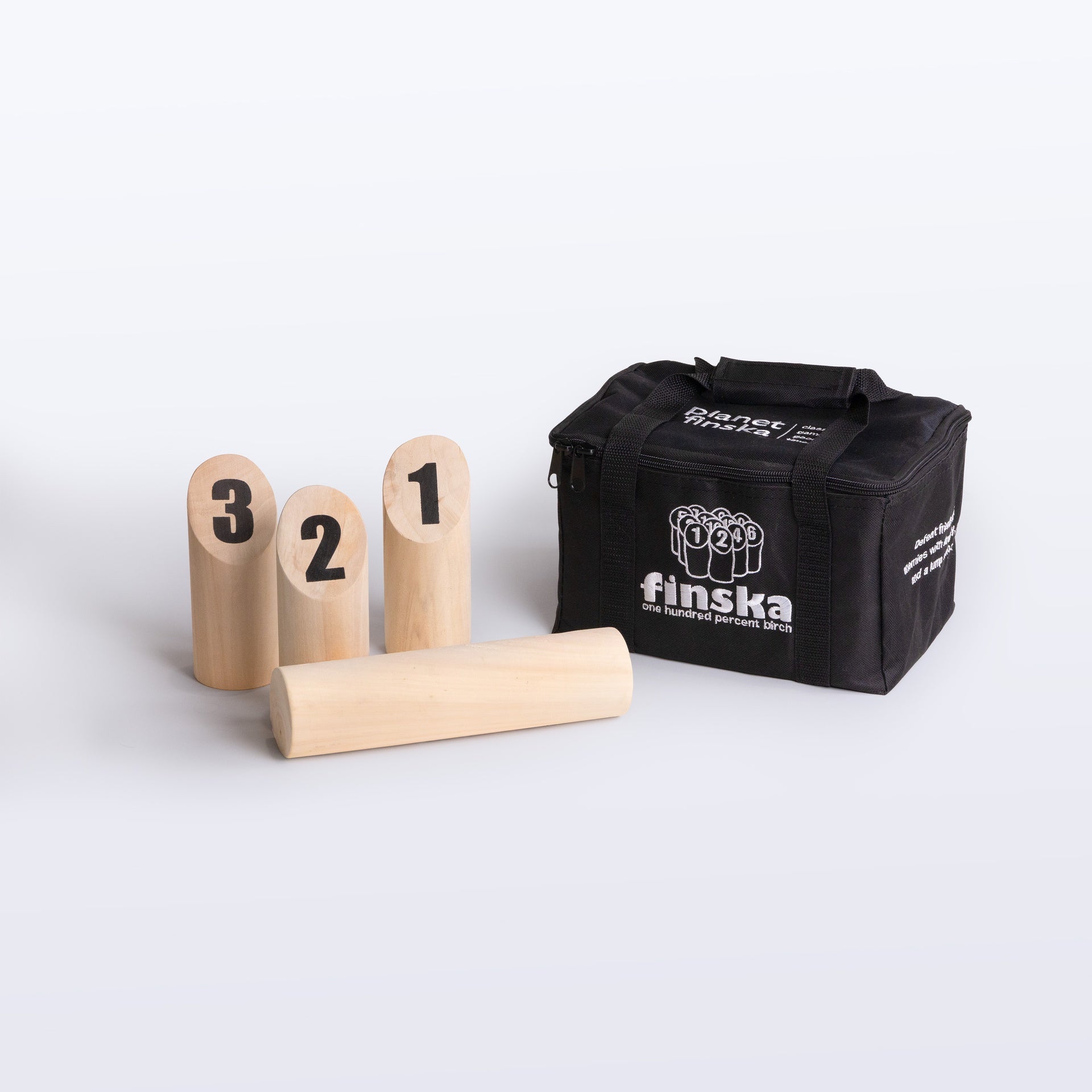 Finska will provide guaranteed "funska" for all ages at your next party, barbecue or picnic. Original Finska is crafted from eco-friendly birch and comes with everything you need to become yet another Finska tragic! This set includes a durable zip up carry bag, 12 numbered pins, one Finska throwing log plus a score sheet and rule card.