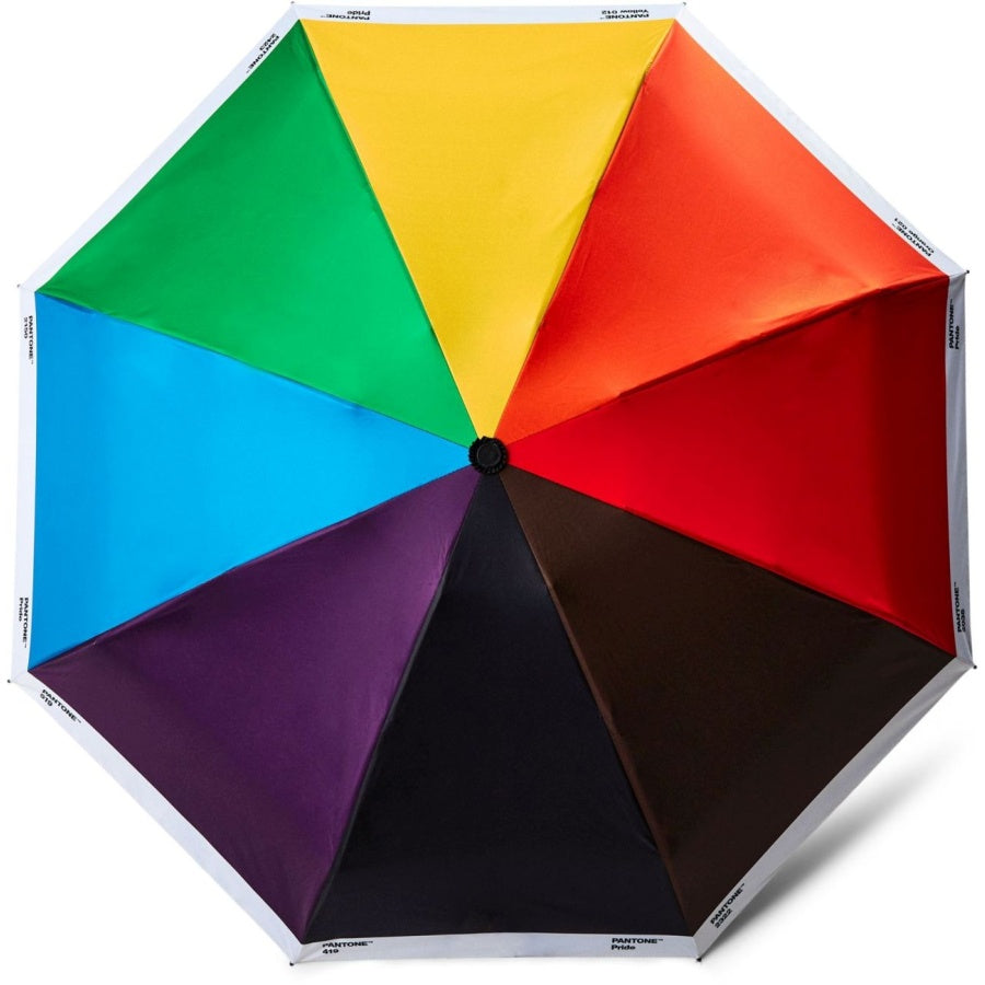 Shield yourself from any weather with the Pantone Pride Rainbow Travel Umbrella.