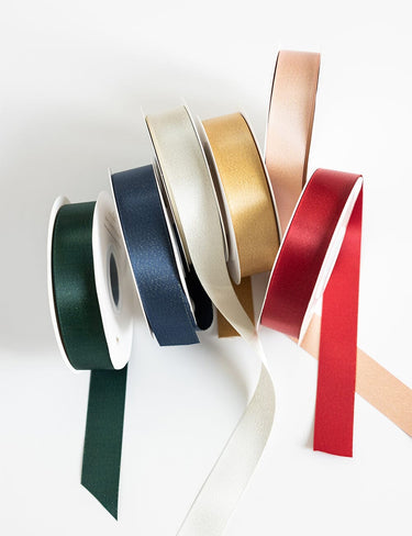 30 metres of shimmer satin ribbon, on a gold foil printed cardboard spool.