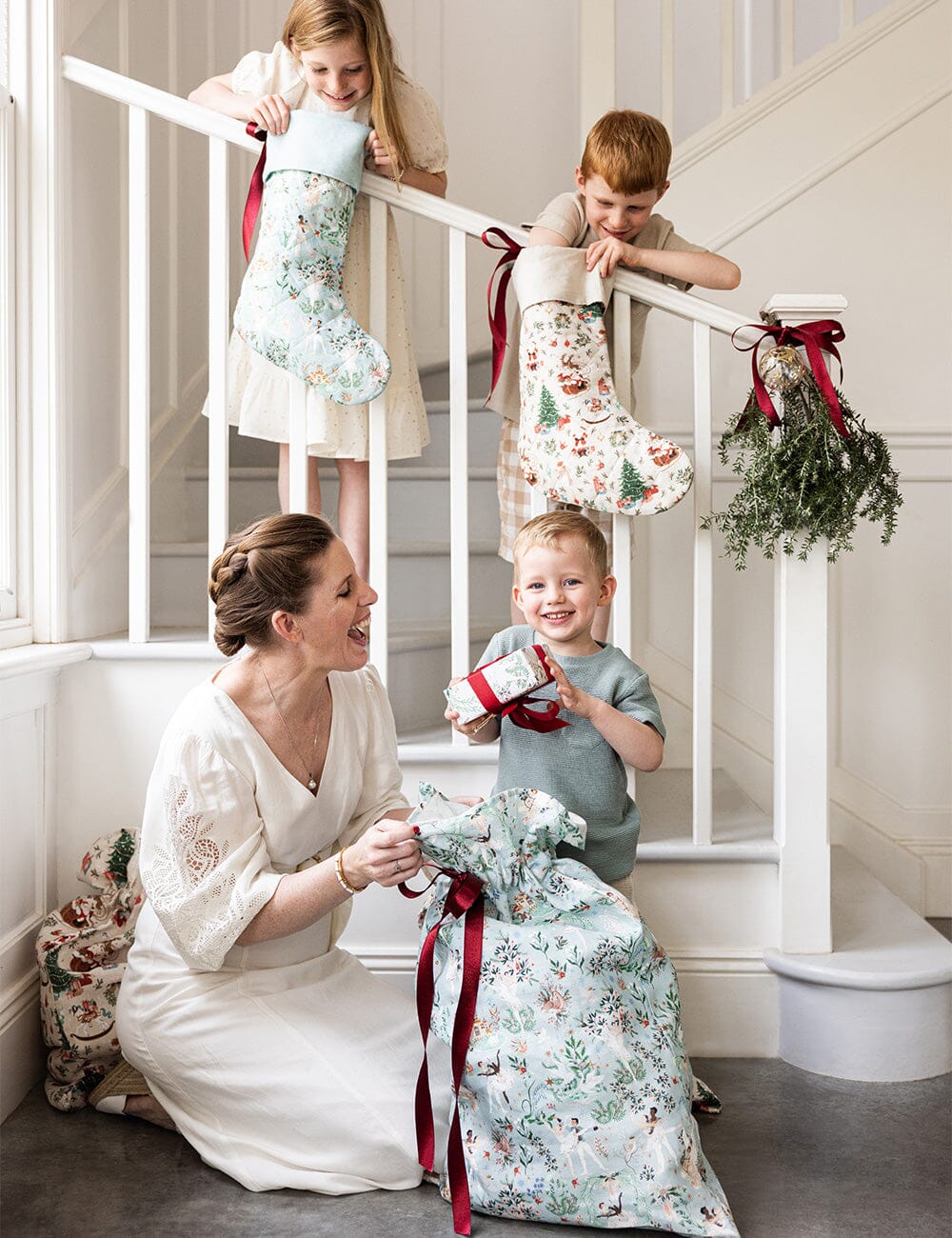 Introducing the Heirloom 100% Linen Christmas Santa Sack, a beautiful way to add magic to your Christmas celebrations. Crafted from premium linen and adorned with charming illustrations by Meghann Rader, this Santa sack brings a timeless touch to your Christmas traditions. Perfect for placing at the foot of a bed or under the Christmas tree, it awaits Santa's delightful gifts.