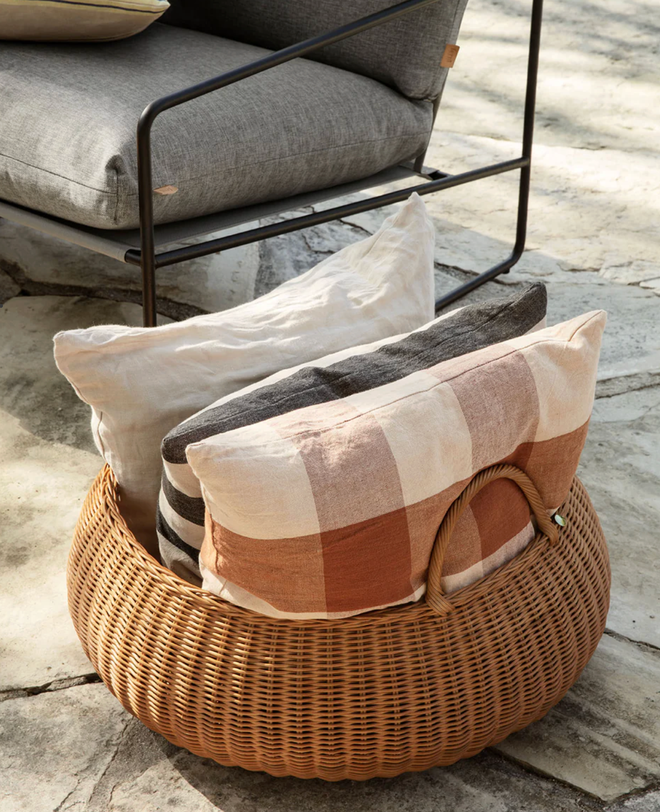 With its low and wide dimensions, our Braided Basket gives you plenty of room for storing various objects in the home. Use it next to the sofa, in the bathroom for laundry or bring it outside to store blankets and cushions. Made from natural, hand-braided rattan, the versatile piece fits seamlessly into any room with its calm and natural expression.