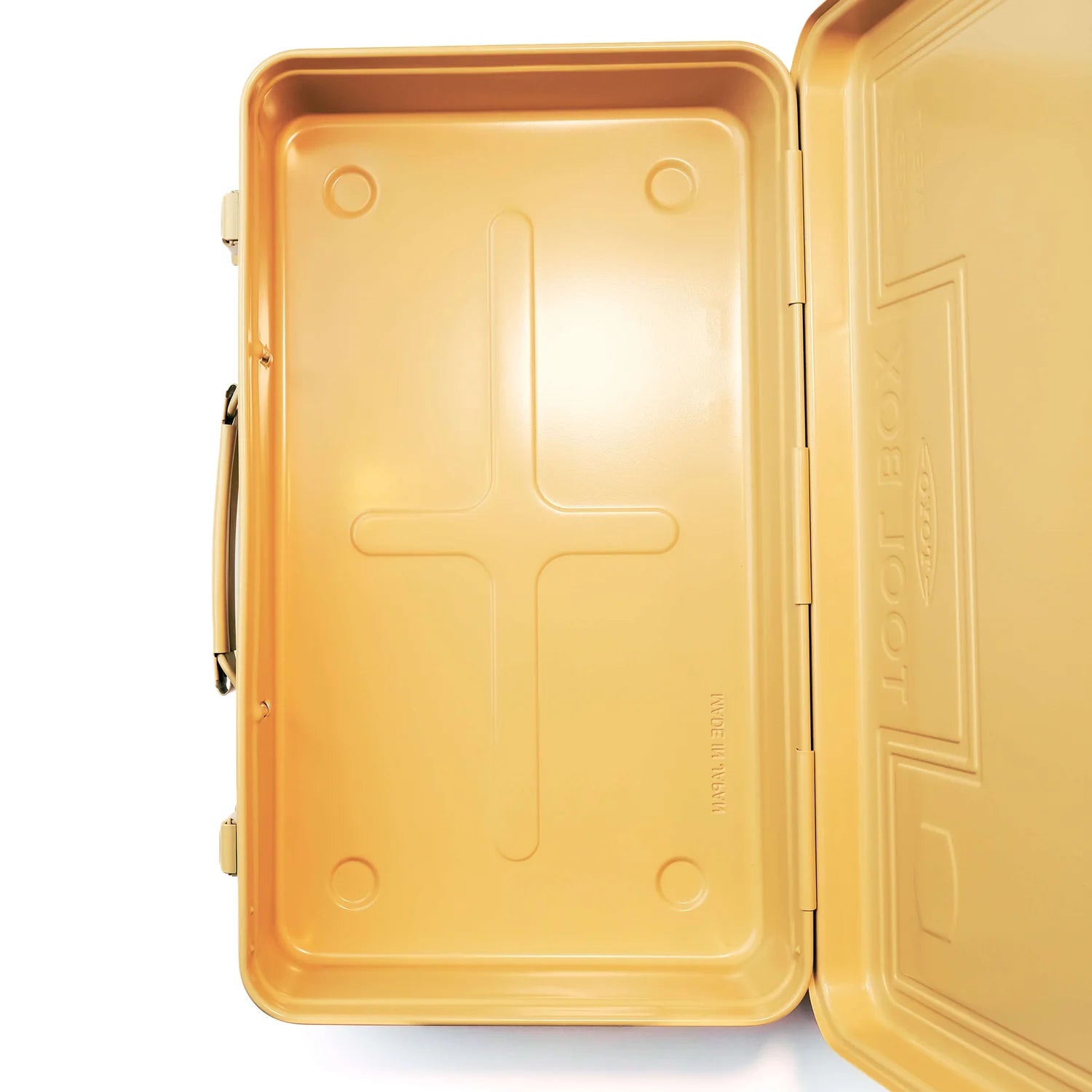 Toyo's trunk-type toolbox is a beautiful intersection of form and function. Flat-topped with a comfortable rounded handle, it closes securely with two latches and can be locked shut with a 4mm padlock (or two).