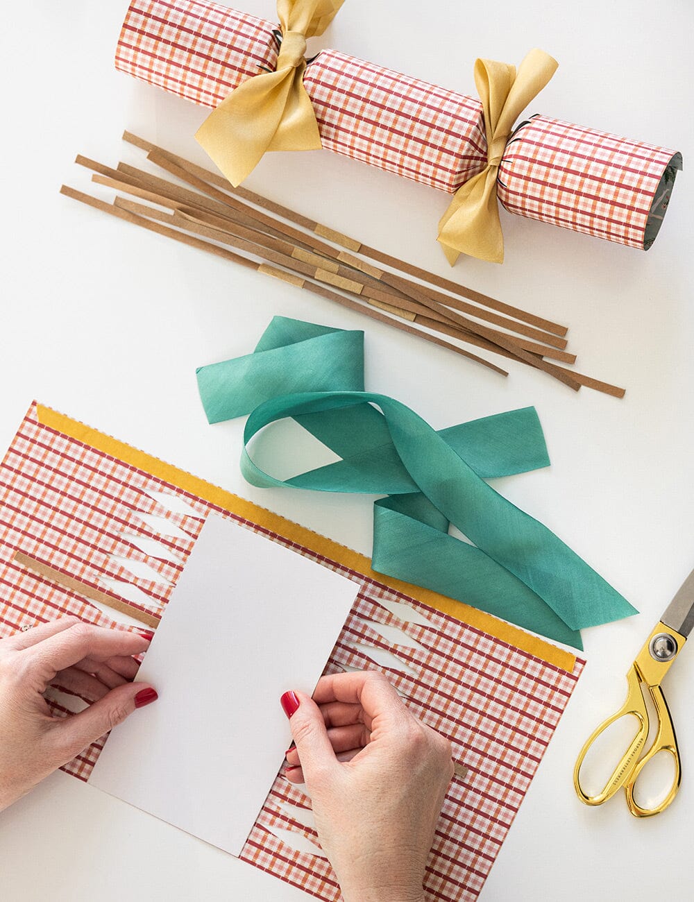 7. Fill the cracker with your treats and seal the other end with ribbon ready for Christmas!