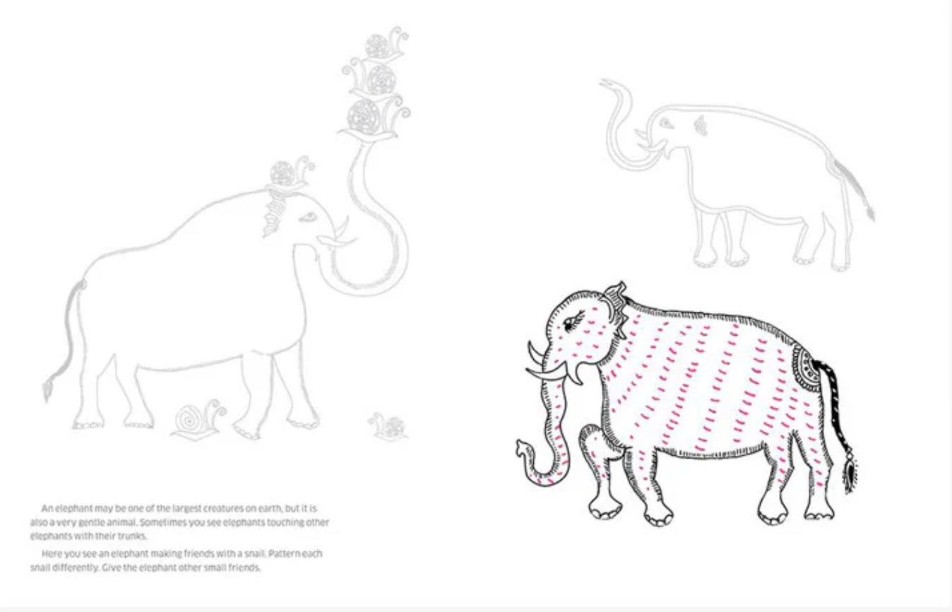 This unusual art activity book featuring the Indian elephant introduces children to a variety of Indian art traditions. Through tracing, patterning and colouring the elephants, children learn to explore each of the 8 distinctive styles in the book – or just have fun.