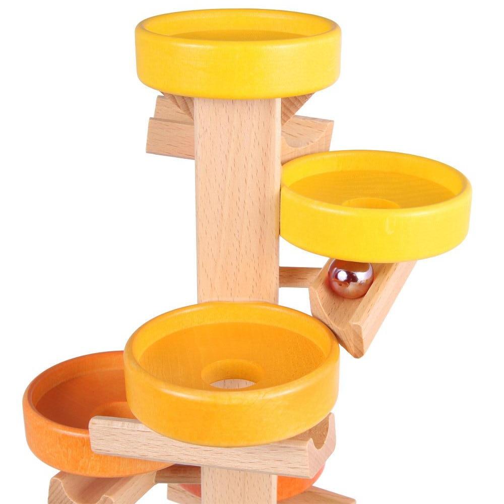 The Beck Plate Tower in Rainbow differs slightly to the standard marble run in that the marbles travel at a slower pace due to the inclusion of rounded plates. The marbles spend their time spinning around the flawlessly handcrafted plates before dropping onto the next one and finally finish with a wonderful chime of 3 musical notes. Perfect marble run to stimulate those developing minds with scientific concepts such as gravity, weight and inertia involved.