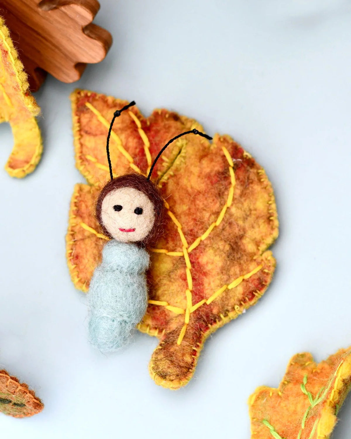 Crafted from natural wool felt and shaped into delicate leaves, these felt leaf babies capture the essence of the natural world in a whimsical and playful way.