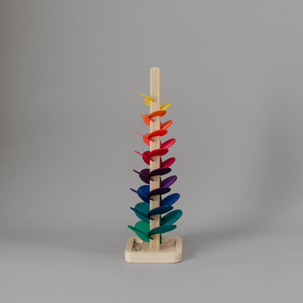 Children love watching and listening, as the balls cascade down the leaves of the Marble Tree. Painted with plant-based colours, the grain and warmth of the wood coming through, the Grunspecht Marble Tree calms the senses and is mesmerising to watch.