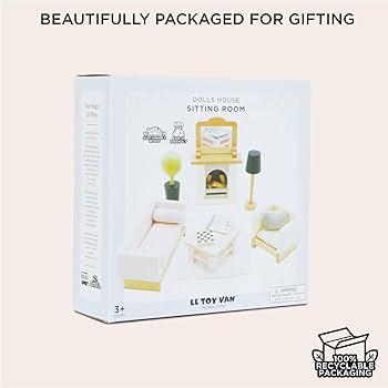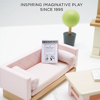 Designed to dazzle and delight in any dollshouse, this 19-piece ensemble is the pinnacle of style and sustainability. Crafted from solid FSC®-certified wood, each accessory is built to endure generations of play. Sink into the squishy sofas, perfect for newspaper reading or family game nights. Complete with;