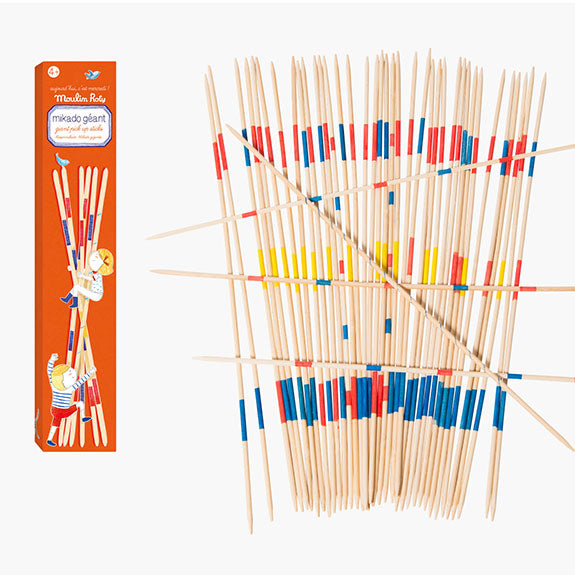 Discover endless fun with the Moulin Roty Mikado Géant! This giant version of the classic game sharpens concentration and analytical skills while enhancing fine motor abilities and agility in an exciting way.