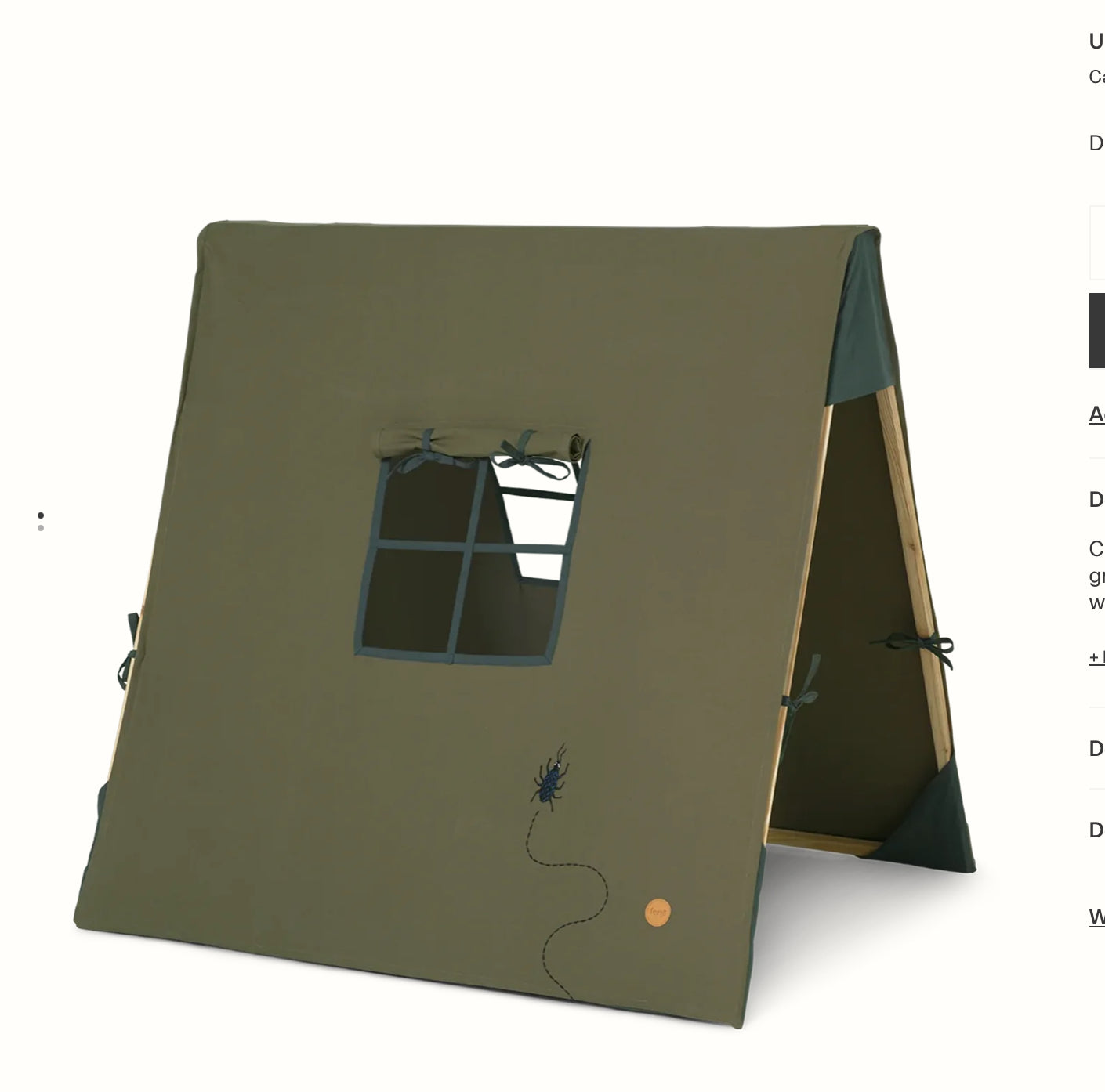 Ferm Living - Play Tent with Beetle Embroidery, Olive