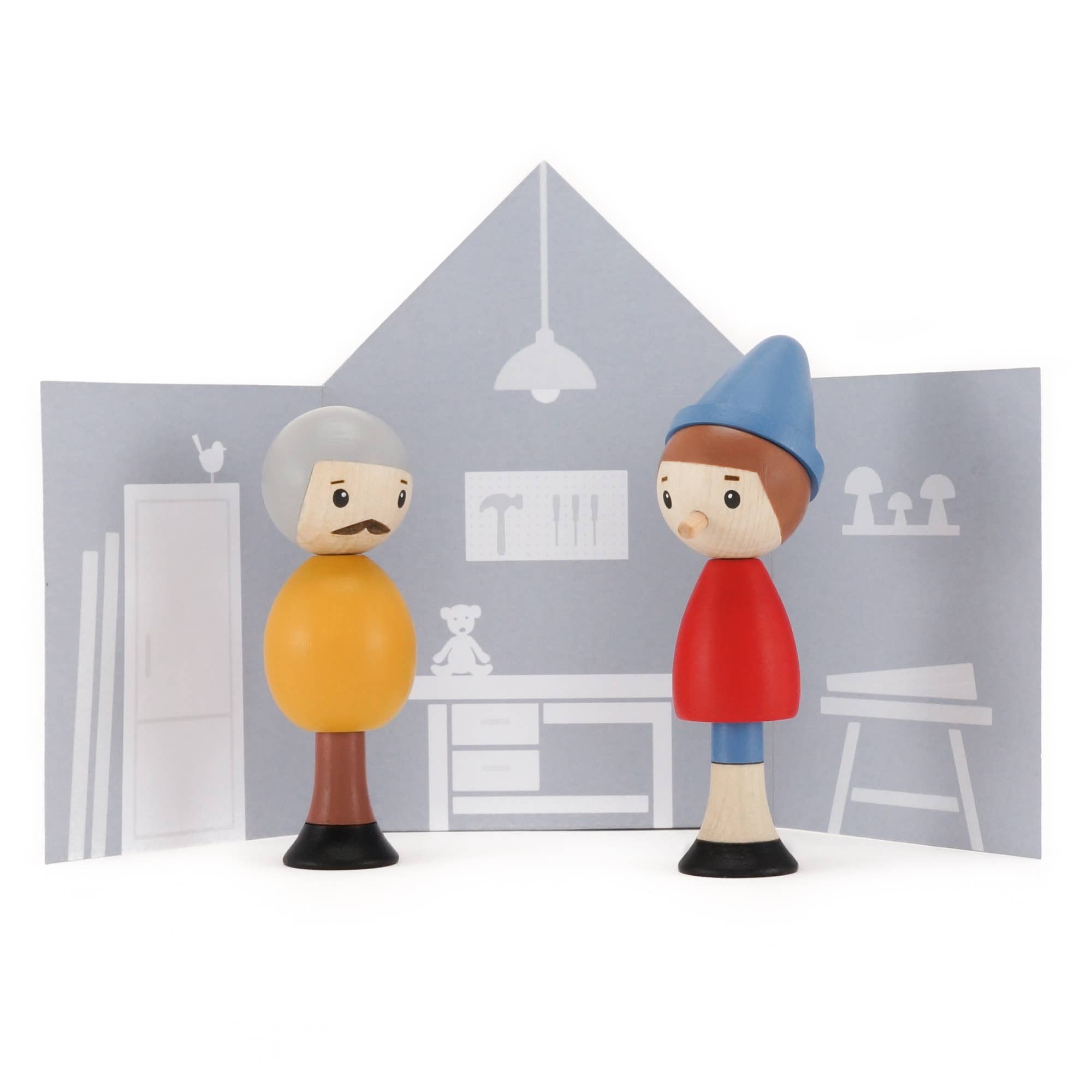 Thoughtfully designed for storytelling, play, and display, this timeless set invites children and adults alike to bring the beloved tale to life in their own imaginative way. The set includes a matching wallpaper that transforms the house-shaped box into Geppetto´s workshop.
