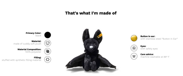 Measuring 7 inches tall, Boris is designed to quickly flutter into the hearts of both little and big spooky fans alike. This plush bat sits comfortably upright thanks to the small beanbags sewn into his body, adding to his playful appeal. Boris is sure to become a beloved Halloween companion for anyone who loves a mix of cute and spooky.
