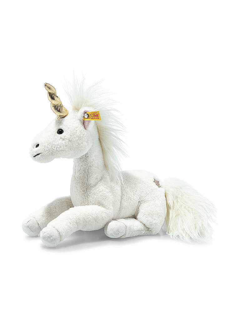 Measuring 27 cm tall, Unica dangling unicorn comes in a lying-down position with little bean bags in its hooves and tummy, providing extra stability and a wonderful sensory experience for children thanks to its weight.